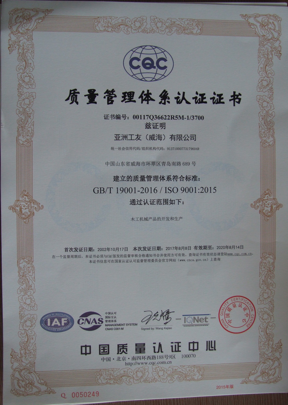 截止2017年,公司運行質(zhì)量管理體系已十余年,期間歷經(jīng)數(shù)次換證認證和換版認證。此次根據(jù)公司實際將依據(jù)最新頒布的質(zhì)量管理體系標準GB/T19001-2016/ISO9001:2015進行換版認證。