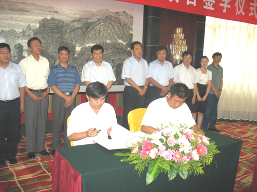 董事長董延偉(右)同中科院沈陽計(jì)算技術(shù)研究所副所長馬躍(左)簽訂合作協(xié)議書