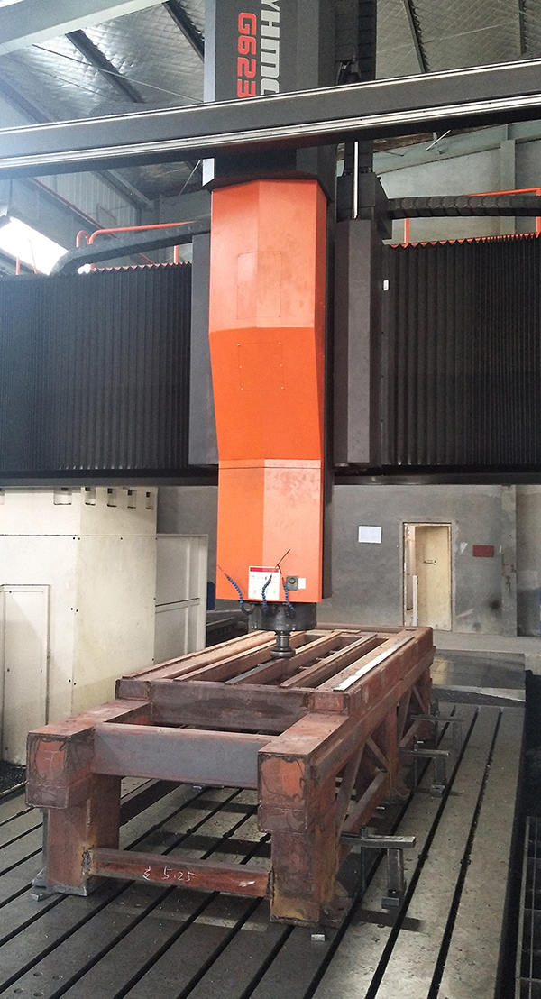 ◆橫梁采用厚壁10*200*300大方管,經(jīng)時效升溫580度自然降溫去應(yīng)力,采用五面加工中心一次成型加工,保證導(dǎo)軌面齒條面,立柱安裝面的形位公差,然后用側(cè)銑頭打孔攻絲一次合成,從而保證裝配精度。