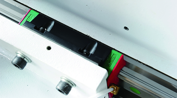◆Y軸采用四個臺灣上銀HGW35H加長重型滑塊,其他開料機廠家大多數(shù)使用30普通滑塊,更甚者使用25滑塊。