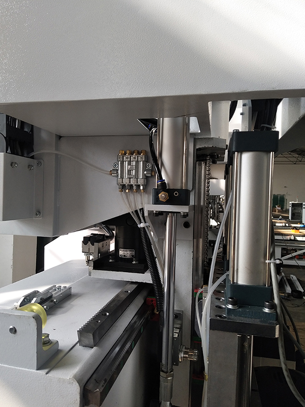 1. 功能:四個6KW主軸+推料裝置,適用于板式家具高效開料、打孔、開槽、銑型加工;